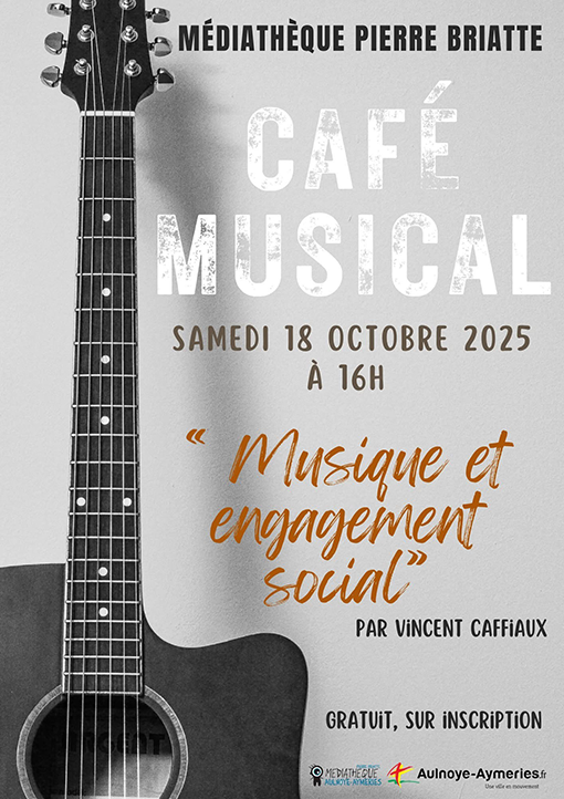 Samedi 18 octobre à 16h, nous vous invitons à un nouveau café musical, animé par Vincent Caffiaux, ayant pour thème « Musique et engagement social ».