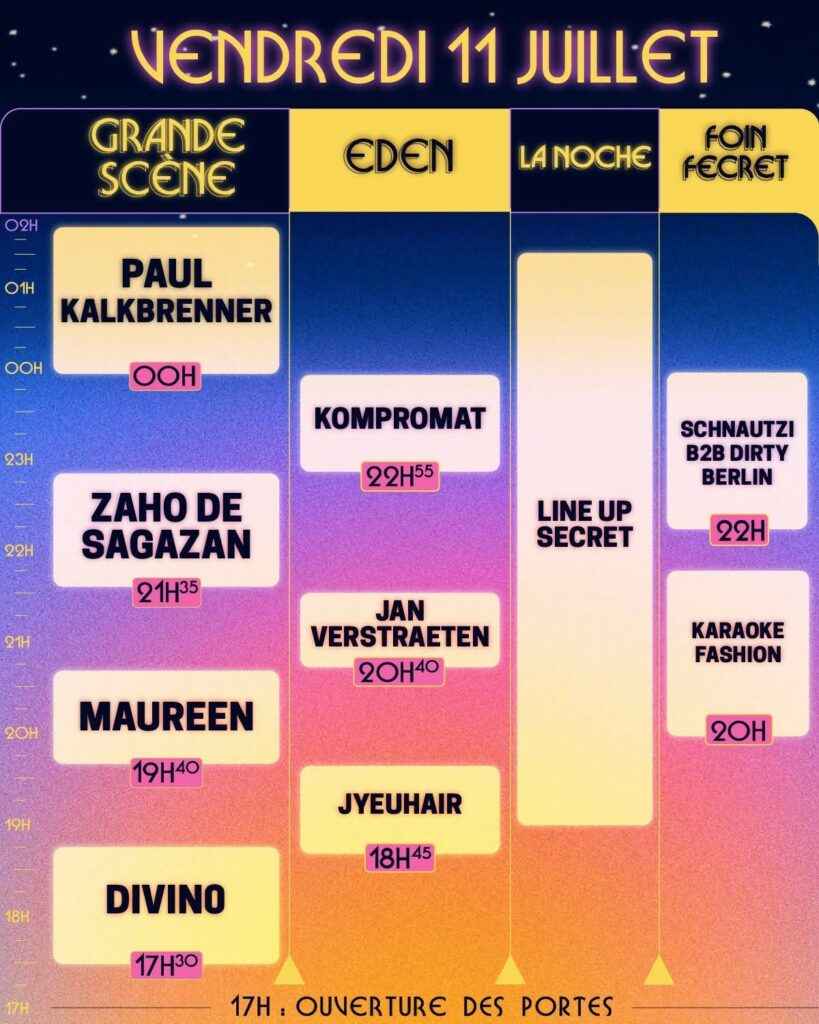 Du 11 au 13 juillet 2025, Aulnoye-Aymeries est le lieu de toutes les rencontres, l’endroit parfait pour partager, danser, s’amuser, se laisser bien volontiers surprendre et vibrer de concert face à La Grande Scène, Le Foin secret, L’Eden ou encore La Noche qui vous emmène au bout de la nuit à moins que ce ne soit au petit matin…. C’est là tout le savoir-fête des Nuits Secrètes, une façon d’être ensemble sans bouder son plaisir !