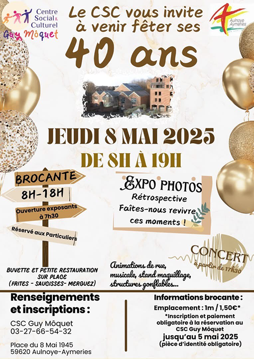 Indissociable de la place du 8 mai et de cette date, le Centre Social et Culturel Guy Môquet vous invite à célébrer son quarantième anniversaire.