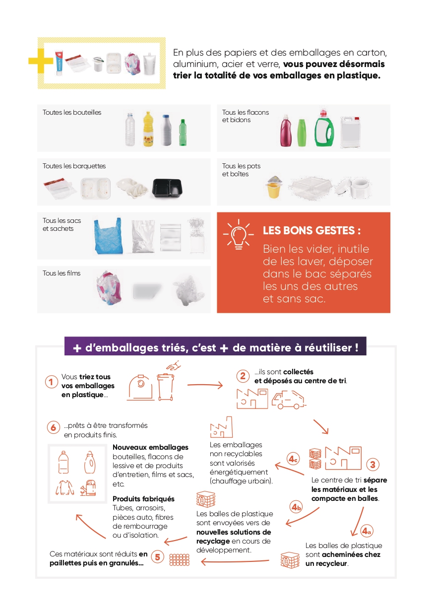 Afin de simplifier le geste de tri des habitants, tous les emballages plastiques sont désormais à déposer dans le bac jaune !